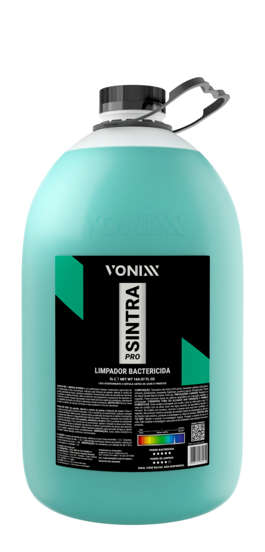 O Sintra Pro da Vonixx é um multilimpador flotador universal de alta performance, desenvolvido especialmente para a limpeza profunda de interiores de veículos. A sua fórmula bactericida e germicida com pH balanceado atua eficazmente na eliminação de microrganismos, manchas de gordura e sujidade acumulada.