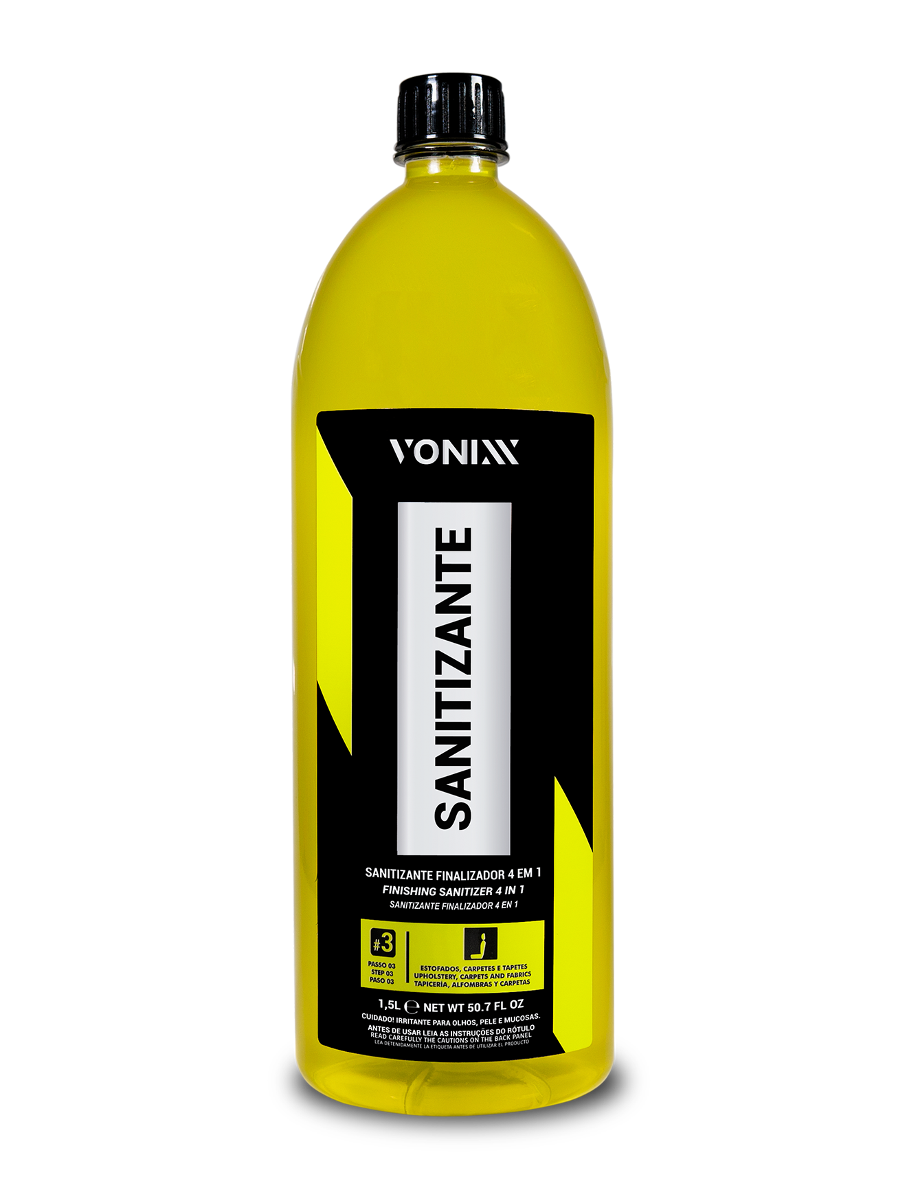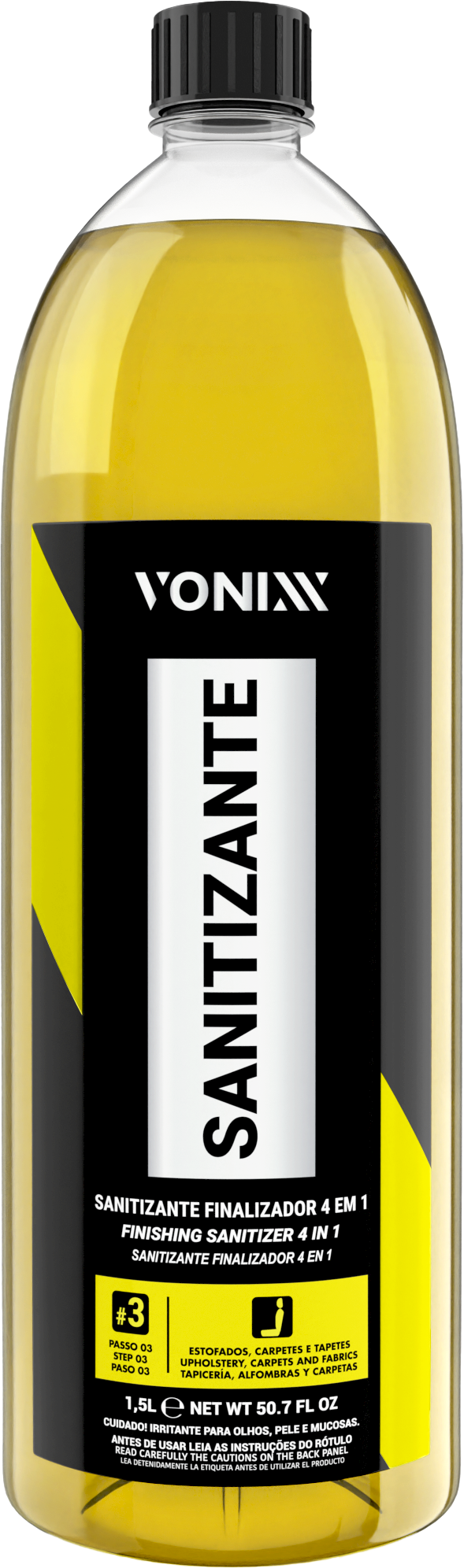 O Sanitizante Finalizador da Vonixx é um produto 4 em 1, especialmente desenvolvido para ser aplicado na etapa final da higienização de estofados, tapetes e carpetes. A sua fórmula de pH neutro elimina germes e bactérias, deixando uma fragrância suave, agradável e um toque de maciez nas fibras.