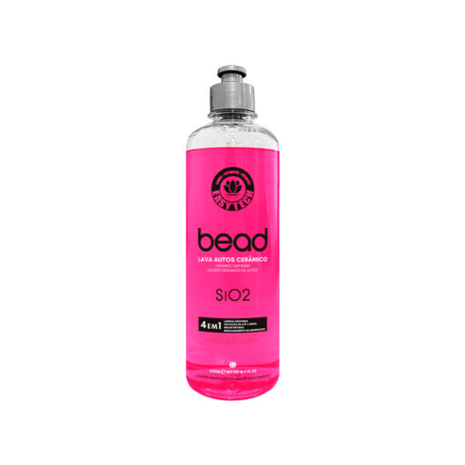 BEAD é um shampoo com SiO2 (dióxido de silício) de pH neutro. Ele lava e protege ao mesmo tempo: durante a lavagem, interage o poder de limpeza com a integração perfeita do SiO2 formando um filme hidrofóbico que bastante hidro-repelência, promove brilho intenso, mascara imperfeições da pintura e gera um toque super liso. Serve tanto para manutenção de carros já vitrificados quanto para limpeza e cobertura de veículos veículos sem proteção prévia. A proteção de Bead é de até 4 meses.