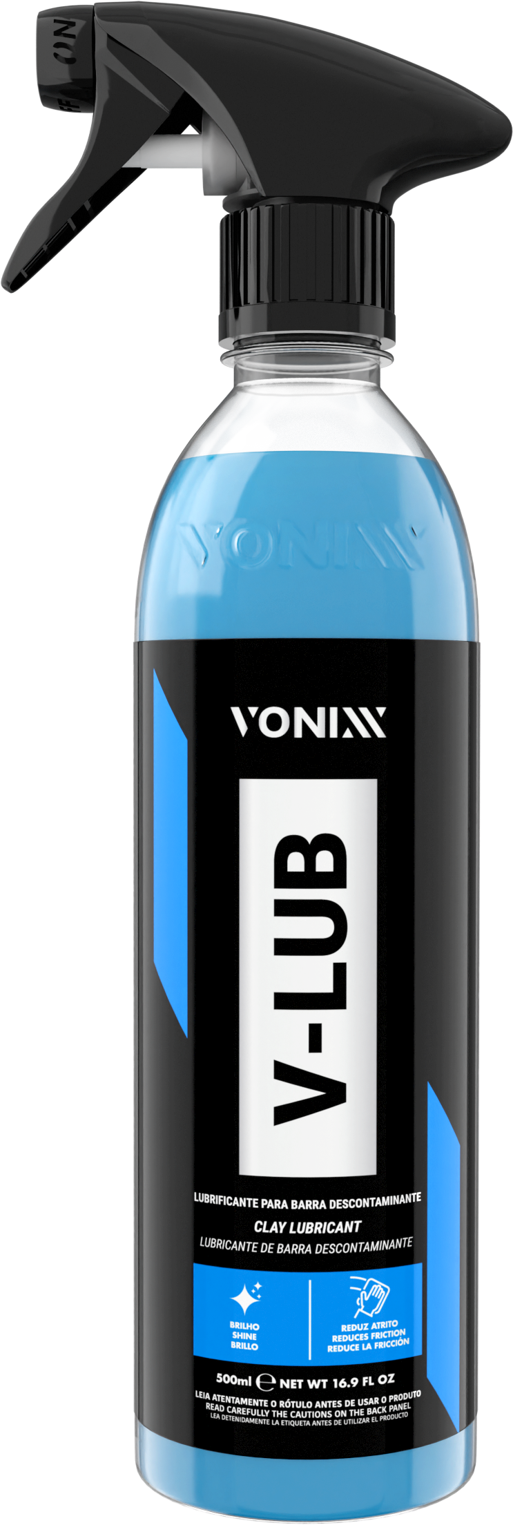 O V-Lub foi desenvolvido especialmente para lubrificar barras descontaminantes, incluindo a barra da linha Vonixx (Vintex) e outras disponíveis no mercado. A sua fórmula avançada proporciona deslizamento suave da barra sobre a pintura, reduzindo o atrito e, consequentemente, minimizando significativamente o risco de riscos ou marcas indesejadas na superfície.